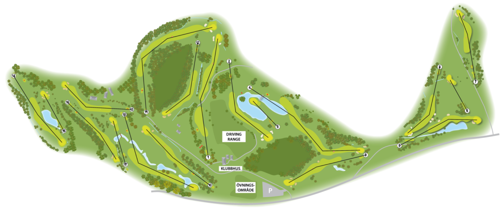 • Ett övningsfält med 3 bunkrar gör det möjligt att öva inspel från ca 100 m in till en green med flaggplaceringar.