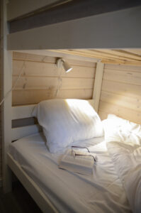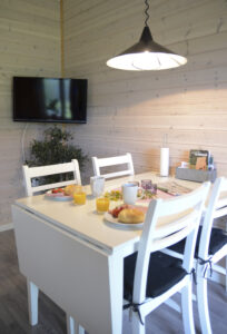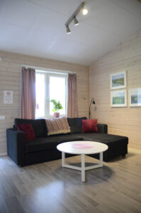 Lägenheterna är på 25 kvm och fullt utrustade (inkl. kudde, täcke, lakan och handdukar). Det finns pentry med mikrovågsugn, vattenkokare och kaffebryggare. I sovrummet finns en våningssäng med 2 bäddar och I allrummet finns tv och soffan görs enkelt om till 2 bäddar. Badrummet är stort och helkaklat med dusch. Allt är nytt och fräscht. Uteplats med bord och stolar samt grill finns.